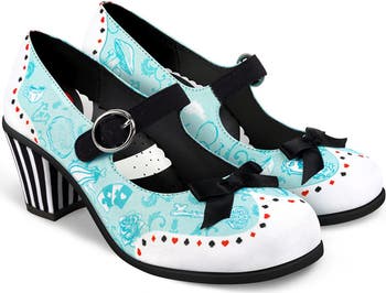 Step into storybook charm with our Hot Chocolate Design Alice Mary Jane Pumps! Featuring a printed fabric upper inspired by whimsical details and a smooth synthetic lining, these heels blend playful design with everyday comfort. The cushioned insole with built-in arch support helps keep each step comfortable, while the rubber sole provides stability for all-day wear. A classic adjustable buckle strap ensures a secure fit, and the removable gaiter (spat) accessory lets you transform the look from a clean, classic pump into a more elaborate, statement-making style. Finished with a comfortable 2.5" (6.5 cm) heel for just the right amount of lift. Check our Hot Chocolate Design Size Chart to find your perfect fit.Collect them all!