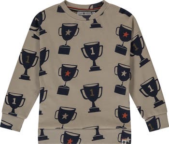 This pullover crewneck sweatshirt features an allover sport themed illustration graphic.
