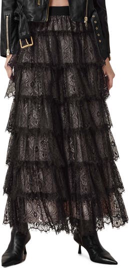 Enter your gothic romance era with this lacy maxi skirt complete with a scalloped hem.