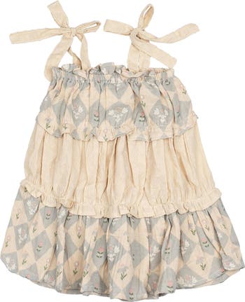 Our Amber Dress, made from airy 100% cotton gauze, features our bestselling silhouette and hand-drawn fan-favorite prints. The tiered design alternates floral and broderie anglaise layers for a romantic, heirloom feel. Adjustable tie straps and a flattering A-line silhouette ensure a perfect fit. Ideal for in-between seasons—wear alone or layered. Made in Peru with love.