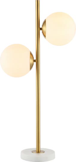 - This Art Deco-inspired orb table lamp has a brass finish and frosted glass globes for bright ambient light