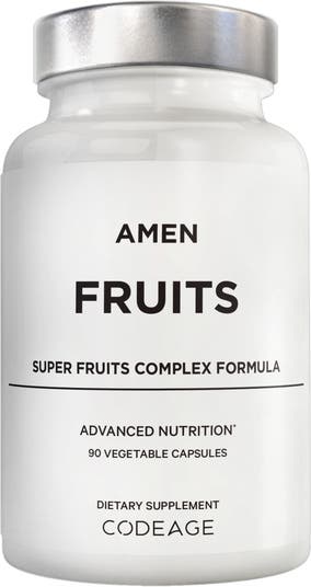 - Amen Fruits capsules formula is a vegan supplement that contains a diverse blend of raw whole fruits and berries, including citrus tropical fruits, pome fruits, red fruits, and dark berries. Enriched with red superfoods such as acai, pomegranate, and black currant, this daily multivitamin offers a convenient way to incorporate whole-food ingredients into your diet.