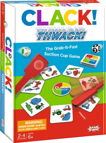 CLACK! Thwack! puts a high-energy twist on the bestselling original! Players roll the dice to reveal a color, category, or number—then race to find the matching token. Got it? Thwack! Use your suction-cup swatter to grab it! If no matches are on the table, race to thwack the center token to win all current tokens. With nonstop action and laugh-out-loud fun, it’s a perfect choice for game nights, classrooms, and travel entertainment. For 2–4 players, ages 5 and up.