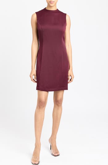 AMINA Mock Neck Shift Dress in Fluid Crepe