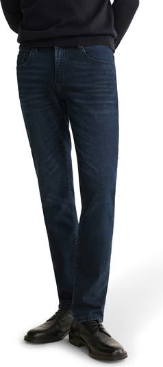 High-retention stretch brings flexible comfort to these dark-wash jeans cut in a slim, mid-rise silhouette.