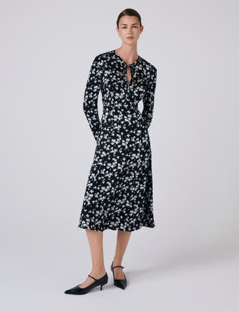 Winter florals are a timeless addition to any wardrobe and an easy go-to for those days when you want to inject subtle pattern into a look. The Ana midi dress is the perfect way to do just that. Featuring a simple round neck with tie fastening, covered buttons at the front of the bodice and long sleeves with buttoned cuffs. Crafted in our signature satin fabric for a beautiful drape, the skirt is cut in a flattering A-line. Concealed side zip fastening.