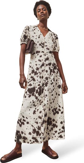 This animal print shirt dress with button front is a versatile choice for both casual outings and stylish evenings. Made from 100% Viscose, it brings comfort and style together.