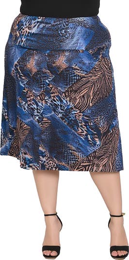 A mix of bold prints comes together in this patchwork inspired Knee Length plus size skirt. Featuring a combination of animal motifs with striking blue and tones, this skirt offers a playful twist on a timeless silhouette. The flowy fit makes it versatile enough for both casual outings and elevated looks.