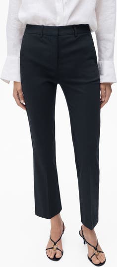 An essential for polished looks, these stretch-woven pants feature a mid-rise waist and slim-cut straight legs that end at the ankles.