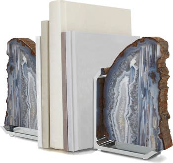 Frame your treasured books with style when you choose these striking bookends crafted from earthy agate and gleaming silvertone plate.
