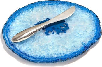 Cheese and crackers becomes a decadent affair when served on this agate plate accompanied by a beautifully brushed and curved spreader.