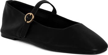 A lightly cushioned footbed and flexible sole bring everyday comfort to this modern mary-jane flat fronted with a trend-right square toe.