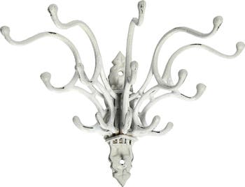 Antique Decorative Cast Iron Multi Hook Wall Hanger with 15 Hooks, Distressed White