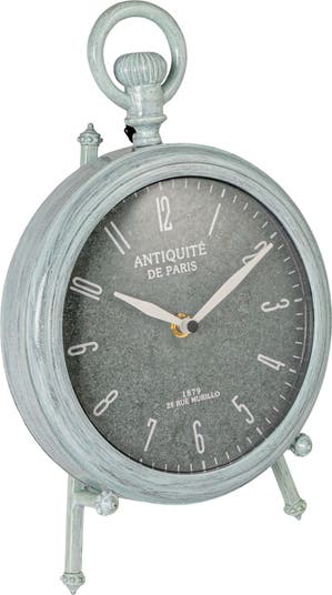 Make a timeless statement with this Antique Reproduction Mantel Clock with stand. Featuring a pewter frame and durable iron holder, this clock artfully combines traditional elegance with contemporary simplicity. The soft blue finish and grey clock face adds warmth and sophistication, while the sturdy iron base ensures a stable display. Perfect for mantels, shelves, or tabletops, this clock offers both refined style and reliable functionality to elevate your living space.