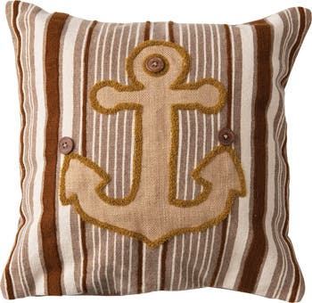 - This whimsically nautical throw pillow features bold stripes printed on durable woven cotton, finished with an appliqued anchor and wood buttons