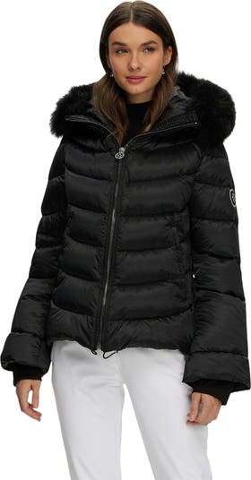 Designed for après-ski comfort, this jacket features a detachable Toscana lamb hood trim, blending functional warmth with sophisticated alpine style.