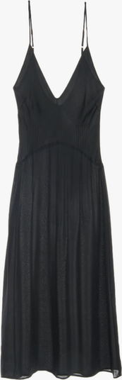 Fitted washed silk georgette slip with fine pin tucking detail for added shape through the waist. Falls right at the knee.