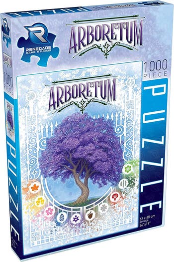 The splendor of nature is nowhere more apparent than in the vibrant hues of an arboretum. The dazzling jacaranda beckons you into this serene sanctuary. Featured in this puzzle is the artwork from the highly praised game, Arboretum, created by Dan Cassar with illustrations by Beth Sobel. It s a Renegade Game Studios 1000 Piece Jigsaw Puzzle titled Arboretum, measuring 26 x 19 inches, and showcasing art from the renowned card game, Arboretum.