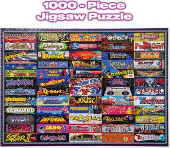 - FUN CHALLENGE: Put your skills to the test with this jigsaw puzzle featuring a jaw-dropping array of classic arcade game logos.