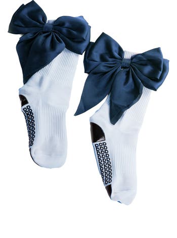 Backed with satiny bows, these charming crew socks give your practice a steady grip with underfoot silicone that cushions and provides traction.