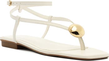 A gilded orb lends a hint of polish to this flat sandal secured with leather straps to complete the resort-ready vibe.