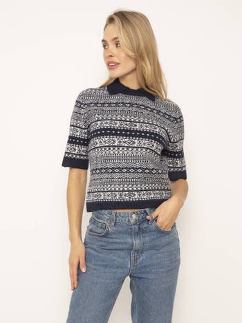 Upgrade your style with the Arlo Mini Fairisle Polo. This mini polo features a classic fairisle pattern, giving it a unique and trendy look. Perfect for both casual and formal occasions, this polo is a must-have in any fashion-forward wardrobe.