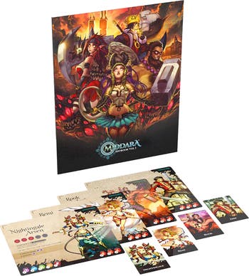 MIDDARA: ARTBOOK, VOL. 1 | 100 PAGES OF SKETCHES AND ILLUSTRATIONS, 4 ALTERNATE ART CHARACTER AND INITIATIVE CARDS - Dive into the breathtaking world of Middara with Volume 1 of the Artbook. The Middara Art Book Vol. 1 contains nearly 100 pages of sketches and finished illustrations from our amazingly talented team of artists. This beautifully designed softcover book boasts a stunning front cover and invites you to explore the visual depth and creativity that define the Middara universe! From character designs to world-building concepts, every page is a masterpiece. INCLUDES: 4 "Alternate art" 5x6 Adventurer cards for Nightingale, Rook, Remi, and Zeke. 4 Initiative cards. 100 Page Art Book. EXPANSION: This is an expansion to Middara: Unintentional Malum - Act 1. An epic narrative driven board game that is heavily inspired by JRPG tactics games. Alongside your friends, players embody one of many characters who traverse the world, defeat monsters, get loot, and level up. Together, you will make hard choices that change the fate of the characters and the world around them.