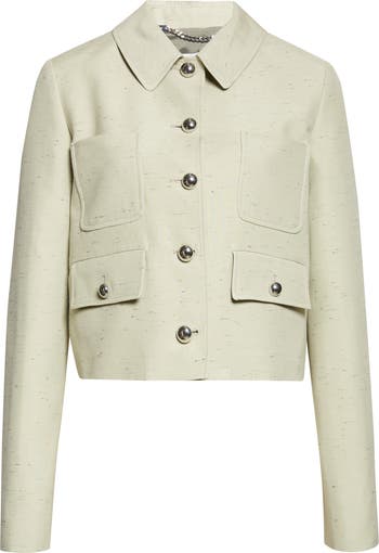 Faint flecks texture this cropped cotton-blend jacket cut in a boxy silhouette and detailed with metal dome buttons inspired by vintage jewelry.