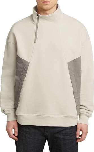 An off-kilter half-zipper updates a sweatshirt made from pure organic cotton and accented with contrasting side panels.