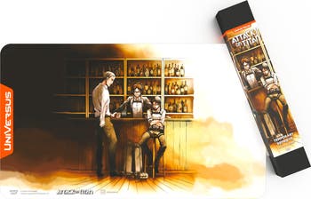 UNIVERSUS: ATTACK ON TITAN: ORIGINS OF POWER - TEMPORARY REPRIEVE PLAYMAT - Keep your cards safe and show them off in style with this brand new playmat featuring the scout regiment leaders taking a Temporary Reprieve! The mat is made from high quality neoprene and features a rubber backing to help keep the mat in place while you play. Laid out the playmat measures 24 inches x 14 inches. The stunning artwork will help take your game to the next level and give a more immersive experience. Accessory to be used with The UniVersus Attack On Titan card game. Includes: (1) 24 x 14 inch neoprene playmat.