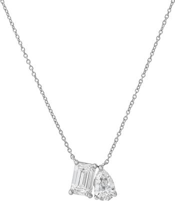 Our elegant Aurelia necklace reimagines the timeless Toi et Moi design. Crafted in 14K Gold with 1 cts of lab grown pear and emerald cut diamonds. Each shape represents two distinct souls joined in perfect harmony. Wear it as a meaningful everyday piece or layered for added shine. The chain is 18 inches. Handmade with precision and rooted in ethical craftsmanship. Diamond carat weight may vary up to 0.05 carats from the stated weight.