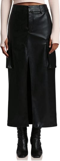 Cool cargo pockets update this maxi skirt crafted from sleek faux leather with an airy front vent.