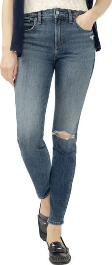 With a contoured waistband and extra room in the hips and thighs, these stretchy, ripped skinny jeans are all about that curve-flattering fit.
