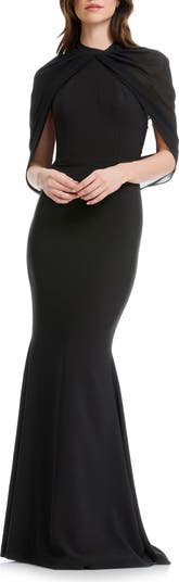Show off as much shoulder as you want with this evening gown featuring a convertible cold-shoulder neckline that drapes elegantly around your back.