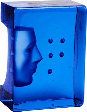 Start a conversation in your home with this eye-catching crystal art piece featuring one of Bertil Vallien s characteristic faces cast in a graphite mold in Sweden.