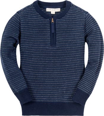 Our long sleeve sweater henley in soft organic cotton combines the sporty look of a henley with the coziness of a sweater for the ultimate in comfort and style. Features a subtle yet cool birds eye knit pattern, half zip closure at the center front placket, and rib trim at the cuffs and collar. A sophisticated twist on a classic!