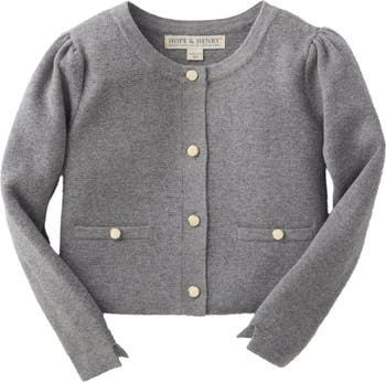 Our adorable fine gauge sweater cardigan is a sophisticated wardrobe staple for your little lady! The textured milano stitch in soft organic cotton gives this classic style the body and structure of a doubleknit, while elegant gold buttons at placket and pockets add just the right amount of sparkle. Layer it over everything!