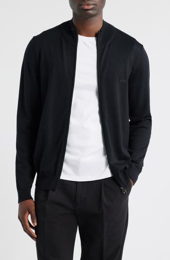 Solid coloring brings easy versatility to a cardigan made of premium wool and designed with a brushed finish and full-zip front rising to a softly ribbed mock neck. The trimmer profile looks smart when it s zipped closed and drapes casually and comfortably when you wear it open.