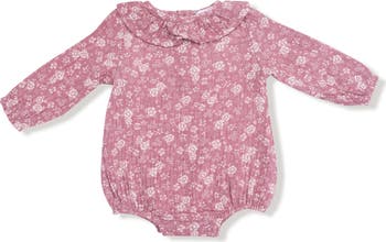 A frilly collar sweetens this long-sleeve bodysuit cut from organic cotton muslin for breathable comfort.