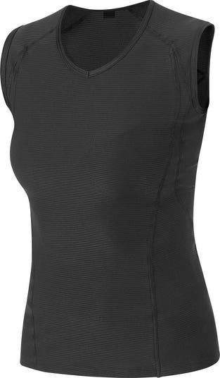 When summer graces you with long days, balmy temperatures, and intense sunshine, the last thing you re thinking about is layering up but don t let your instinct hold you back from the right base layer. Toss on the Gore Wear Sleeveless Women s Baselayer and explore a world of sweat-wicking, cooling fibers that wrap you up to keep your temperature down. Crafted from a blend of synthetic fibers, you ll find that this base layer fits like a second skin, while aiding in moisture transfer to quickly pull away perspiration and dry while you ride. Its cut with minimized flat-lock seams to reduce chaffing, and a construction that contours to your body to keep you comfortable all day. In back you ll find an extended hem that keeps you covered when you re on the bike so you can comfortably move fore and aft without worries of dreaded crack back.