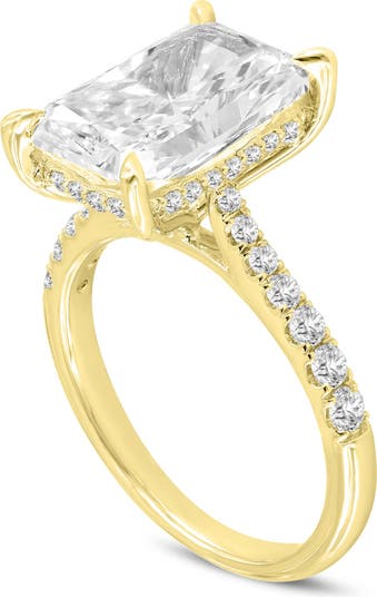 Bayan 14K Yellow Gold Radiant Cut Lab Grown Diamond Hidden Halo Engagement Ring - 5.5 Ct