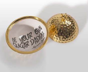 "Be Your Own Sugar Daddy" Grace Jones Quotes to live by or to ponder on- a collection of serveware and objects -sometimes wicked, other times witty or profound - but always with a cool, sophisticated rock and roll vibe. Hand crafted and artisan made- they are glamour and soul. Each of our creations is designed in our San Francisco studio. Master craftsmen using centuries old technique of sand casting create the original mould and skilled artisans hand create every piece, with pride, in our family owned foundry