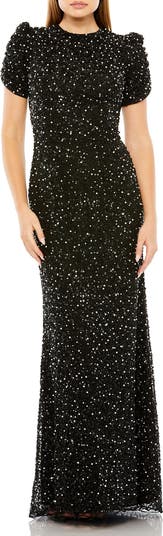 Step into elegance with our Gathered Short Sleeve Beaded Gown. Featuring exquisite beadwork and a flattering silhouette, it s perfect for special occasions and timeless sophistication.