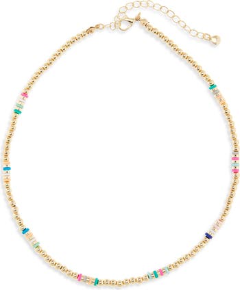 Bring captivating color and shine to your neckline with this everyday necklace strung with a mix of polished metal beads and colored discs.