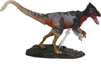 BEASTS OF THE MESOZOIC: MOROS INTREPIDUS - AKA (Harbinger of Doom) - 1/18th Scale Dinosaur Action Figure. This Moros intrepidus figure measures approximately 8″ long and features 18 points of articulation. Includes (1) 1/18th scale Moros intrepidus action figure, (3) pairs of interchangeable feet, (1) display base with posing rod accessories, collectible trading card, unique background display insert and instruction sheet. Detailed package art by Raph Lomotan. DINOSAUR FACTS: Length: up to 2.6m (8.5 ft) estimated. Weight: 78kg (172 lb). Location: Cedar Mountain Formation, Utah. Time: period: 96.4 Ma Late Cretaceous. Named by: Zanno et al., 2019. The earliest known north American Tyrannosaurid by 15 million years, Moros was a much smaller ancestor to the titanic predators that would come later in the Cretaceous. Known only from a few teeth and partial leg and foot bones, its sole specimen is said to be a sub-adult, leaving the adult size of this dinosaur a mystery. Its name Moros ; comes from the Greek term for doom, a reference to the dominant legacy of its Tyrannosaur descendants. CREATIVE BEAST STUDIO: Discover captivating and scientifically accurate dinosaur models. Our extensive collection is perfect for dinosaur enthusiasts like yourself seeking authentic and life-like collectibles. Dinosaur action figure collectibles with maximum articulation is something that we take pride in creating. We invite you to immerse yourself in a forgotten world of beauty and strong organic forms. The Beasts of the Mesozoic toy line began as a Kickstarter campaign in 2016 for the Raptor Series, There have been two more successfully funded Kickstarter campaigns for BotM since then with the Ceratopsian Series (2019) and Tyrannosaur Series (2021). Beasts of the Mesozoic is a scientifically accurate toy line celebrating prehistoric natural history in a realistic and interactive medium. Recommended for ages 15 and up (contains small parts).