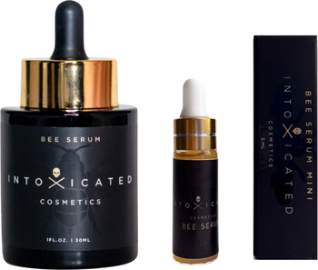 Intoxicated Cosmetics Bee Serum is a luxurious anti-aging formula with Purified Bee Venom (PBV™) to boost blood circulation, plump and firm skin, and smooth fine lines by enhancing collagen and elastin production. Bee Venom also fights oil, bacteria, and acne. Enjoy this full-sized and mini-sized duo, a perfect combination for home and travel!