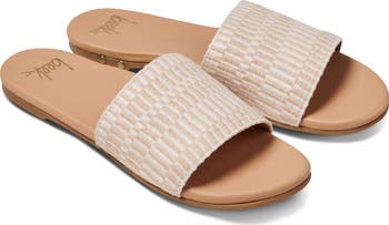 A woven strap amplifies the beachy, vacation-ready vibes of this cushy yet lightweight slide sandal.