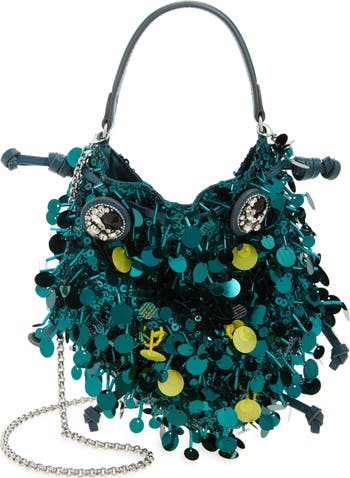 Anya Hindmarch s kooky aesthetic informs the beetle-inspired silhouette of a boldly embellished bag that s suspended from a chain crossbody strap.