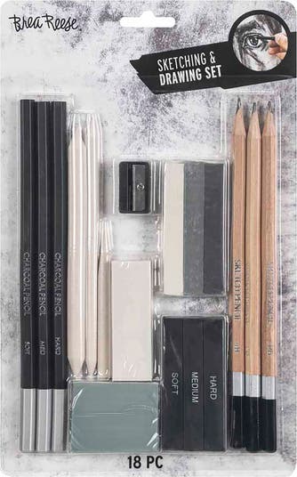 BREA REESE: BEGINNERS SKETCH DRAW SET - For those eager to explore the world of art, the Brea Reese Beginners Sketch and Draw Set is the perfect starting point. This classic 18-piece kit includes everything you need to begin your artistic journey, featuring charcoal and graphite pencils, erasers, blending sticks, and more. It’s designed to facilitate various techniques including drawing, shading, blending, and exploration of different mediums. The set includes essential tools such as three charcoal pencils for rich, dark lines, three graphite pencils for smooth sketching, and three charcoal sticks for bold shading. Additionally, the kit contains three pastels for adding vibrant color, a vinyl eraser for clean corrections, a kneaded eraser for subtle adjustments, and a pencil sharpener to keep your tools ready for use. Two tortillions and a blending stump allow for seamless blending and shading, making this set a comprehensive choice for beginners looking to develop their skills and creativity. Beginner Sketch Draw Set INCLUDES 3 Charcoal Pencils, 3 Graphite Pencils, 3 Charcoal Sticks, 3 Pastels, 1 Vinyl Eraser, 1 Kneaded Eraser, 1 Pencil Sharpener, 2 Tortillons, and 1 Blending Stump.