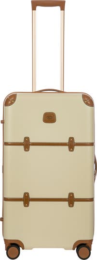 Trunks are the quintessential travel luggage, the oldest and most captivating custodian of so many travel stories. The Bellagio trunk is characterised by its unmistakable design, the most iconic yet. This mid-size 28" travel trunk is made of recycled polycarbonate, a lightweight, flexible material which is ultra durable and impact-resistant. The closure comes with a TSA lock and an ultra-secure zip: this anti-tampering system ensures an optimised level of protection from attempted theft. Perfectly matched to its retro aesthetic, its original proportions offer even more space inside. The inside is complete with a compression system, divided into two compartments to ensure the effective organisation of all your items. The lining is easily removed thanks to a special zip: that way, if needed, it can be washed separately. To ensure comfort and ease of use, the retractable handle is made up of robust, sturdy aluminium tubes with intermediate stop positions so that its height can be adjusted as needed, and an ergonomic grip. The four double wheels move quietly and rotate a full 360° for guaranteed manoeuvrability, equipped with ball bearings that create a smooth ride. Moreover, the wheels are recessed in the shell, thereby increasing the capacity. Bric’s distinctive real leather accents trim the outside of the Bellagio travel trunk, complemented by refined logo details. The leather address tag carrier is an essential finishing touch. To better organize the suitcase, the hanger set and the garment bag in fabric can be purchased separately. Transparent cover included.